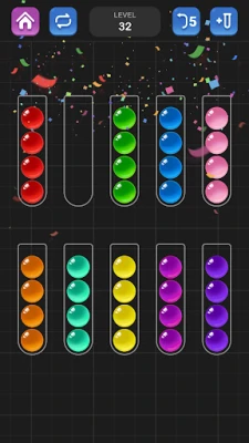 Jitayarishe kuuchangamsha ubongo wako na kufurahia burudani isiyo na mipaka ukitumia Mchezo wa Kupanga Mpira, fumbo la rangi linalovutia kutoka gurugame.ai. Huu ni mchezo rahisi sana kuanza kucheza, unahitaji tu kugonga ili kusogeza mipira, lakini utagundua haraka kuwa ustadi wa kweli unahitaji fikra makini na mikakati ya kina. Kila ngazi inatoa changamoto mpya, ambapo lengo lako ni kupanga mipira yote yenye rangi sawa kwenye chupa moja. Jiandae kwa maelfu ya mafumbo, kila moja likiwa na ugumu wake wa kipekee, yakikuhakikishia hutawahi kuchoka.
