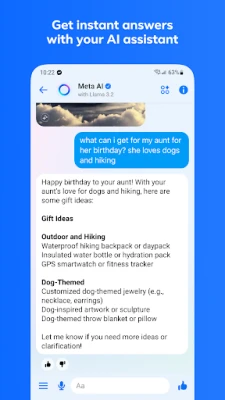 Messenger inabadilisha jinsi unavyoshiriki matukio muhimu. Tuma na pokea picha zenye ubora wa hali ya juu, zenye uwazi na rangi maridadi, zikileta kumbukumbu zako hai. Unda albamu za pamoja za picha na video kwa urahisi, zikusanye kumbukumbu za likizo au sherehe za kifamilia ndani ya gumzo zako za kikundi. Pia, shiriki faili kubwa zenye hadi 100MB, iwe ni hati za Word, PDF, au Excel, moja kwa moja kwenye mazungumzo bila usumbufu. Na kwa Meta AI, una msaidizi wako wa kibinafsi mikononi mwako; pata majibu ya haraka kwa maswali yako, ushauri, msaada wa masomo, na hata kutumia ubunifu wako kuunda, kuhariri, na kuhuisha picha.